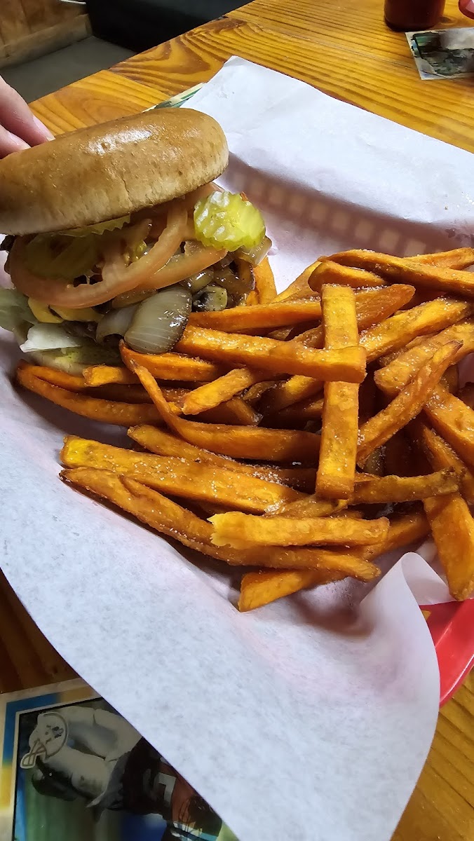 I am betting I will get to come back and change this to a 5* review. There are MANY things I like about this place. It's been here since 1983. I ate here once in 1987. I have eaten a LOT of places, but few I remember after over 40 years. It's a low key, casual atmosphere. Prices are very reasonable. Some combos are less expensive than I have seen on fast food menu's, and i guarantee the food here is MUCH higher quality. I would rather support a long run local family establishment than a fast food chain any day. What I did not like. The hamburger buns were very sweet. Sweet enough I wonder if they are Hawaiian Sweet ones. Which a LOT of people love, I'm just not overly fond of. Next time I will ask if they have any bread alternatives, perhaps they have Texas Toast they could put it on for me, or I can stand to intake less carbs, I can always do a burger open faced or as a patty melt...but now the thought of it on Texas Toast is really appealing! I also did not like the fries. They were very greasy and floppy and flaccid. I rarely eat in and I often take fries home and reheat them in my air fryer. That gets grease off and can make them crispy. However, they were closing when I got here, so maybe the fries are not normally served this way. I chatted with a couple who came in after me. They told me the fish sandwich here is amazing, and it is on different bread so I may try that next time. They also said this place has the best onion rings. I don't eat onions, but that may be useful for someone. Overall I am happy and will return...in less than 40 years! Will update when I do. I am uploading a couple pictures. I am sure my burger looks boring to most, but they DO come with the veggies...I just don't like my salad ON my burger.